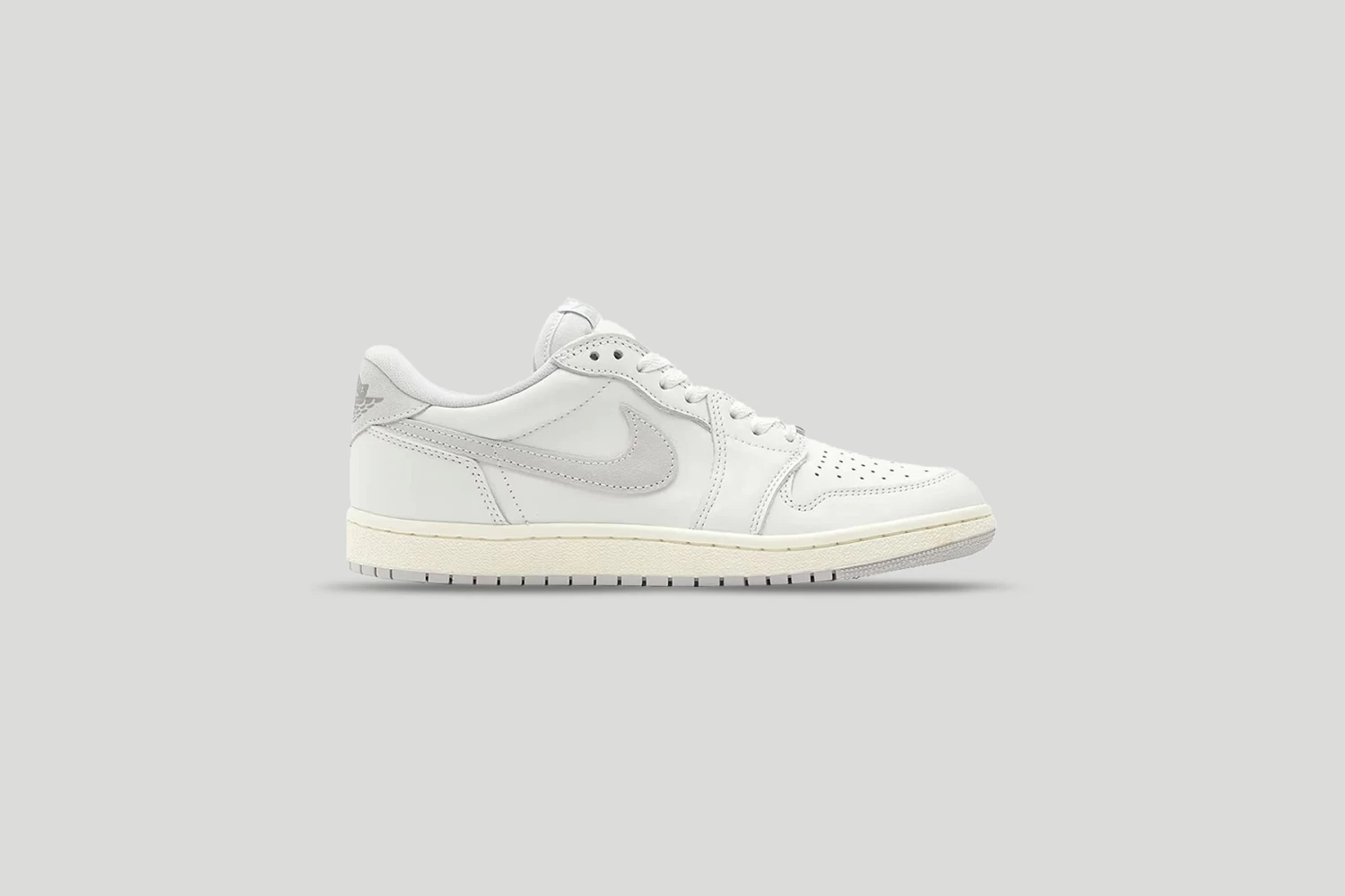 In Summit White, Light Smoke Grey, Neutral Grey, and Sail, this Air Jordan 1 Low nods to the 1985 original design by Peter Moore. White and Neutral Grey suede Swooshes and heels capture the era’s essence. With a Sail midsole and Grey rubber outsole, it’s a well-rounded homage. Complete with OG packaging and accessories, this release delivers a nostalgic revival in style.