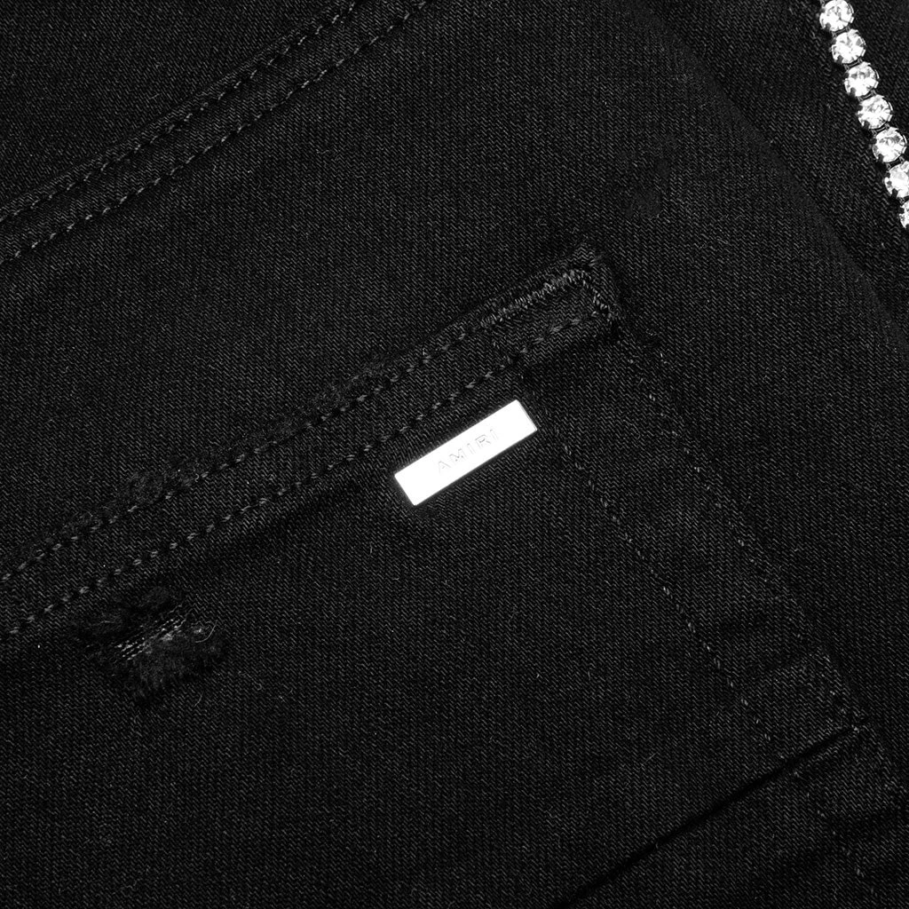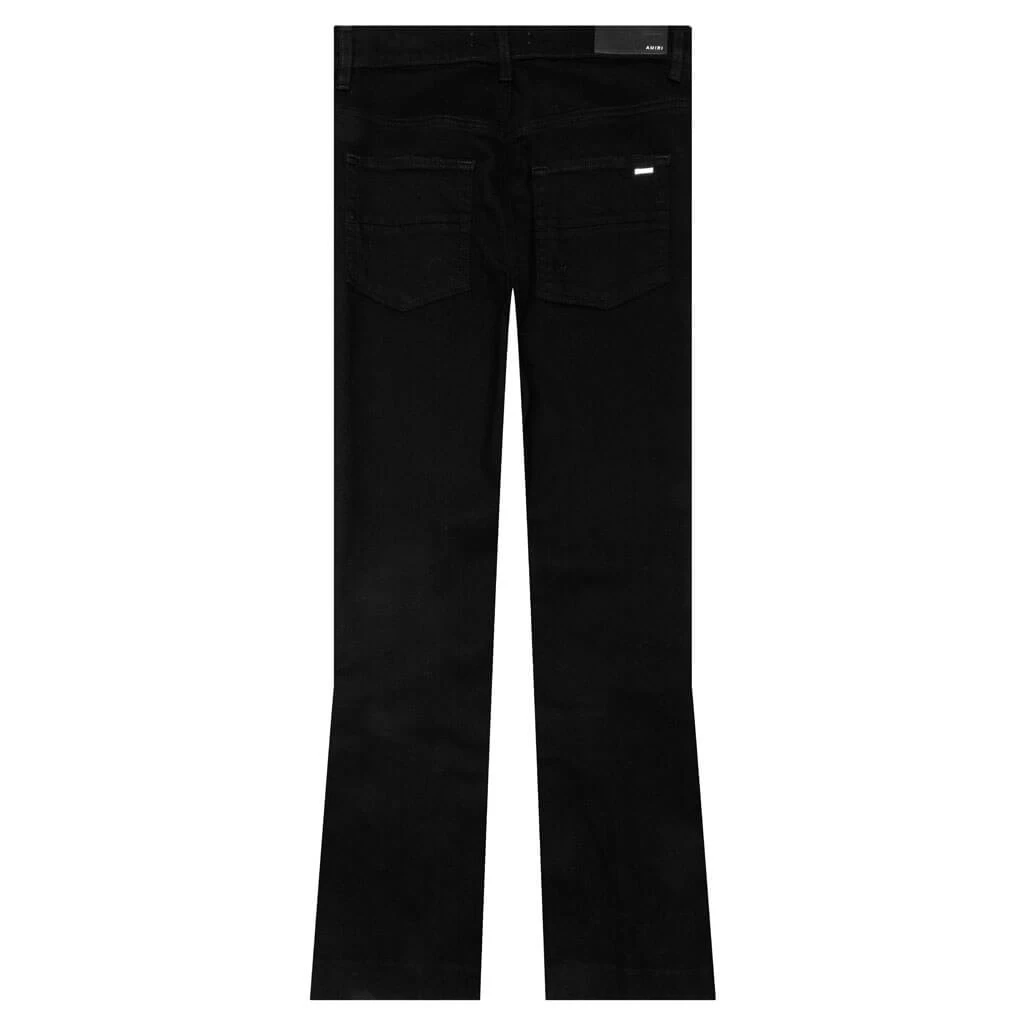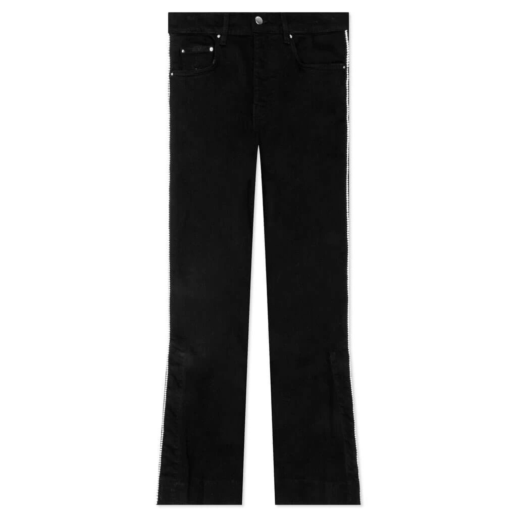 Perfect for everyday wear, the Amiri Crystal Stack Flare makes an impression with its 12 oz cotton construction The design features belt loops in addition to a five-pocket design and a zip fly. Subtle distressing wraps up the remainder of the look.