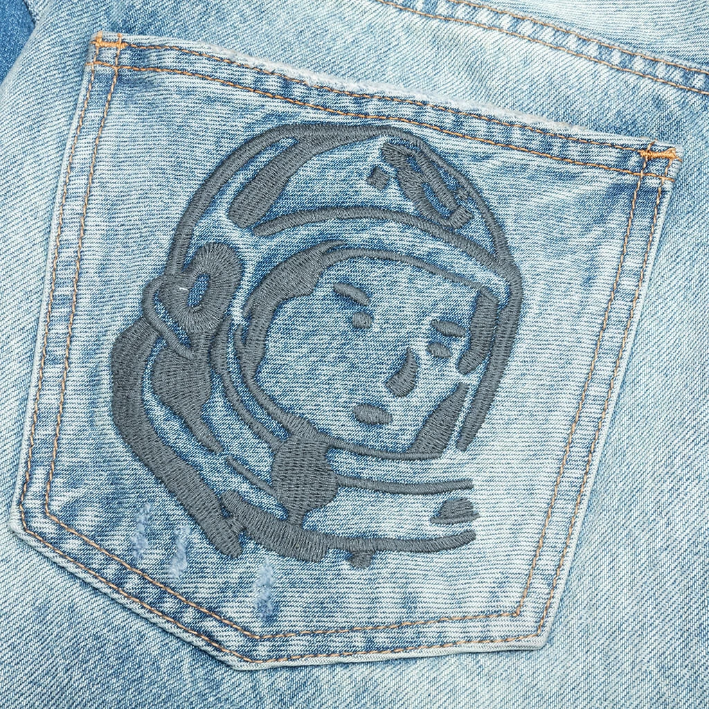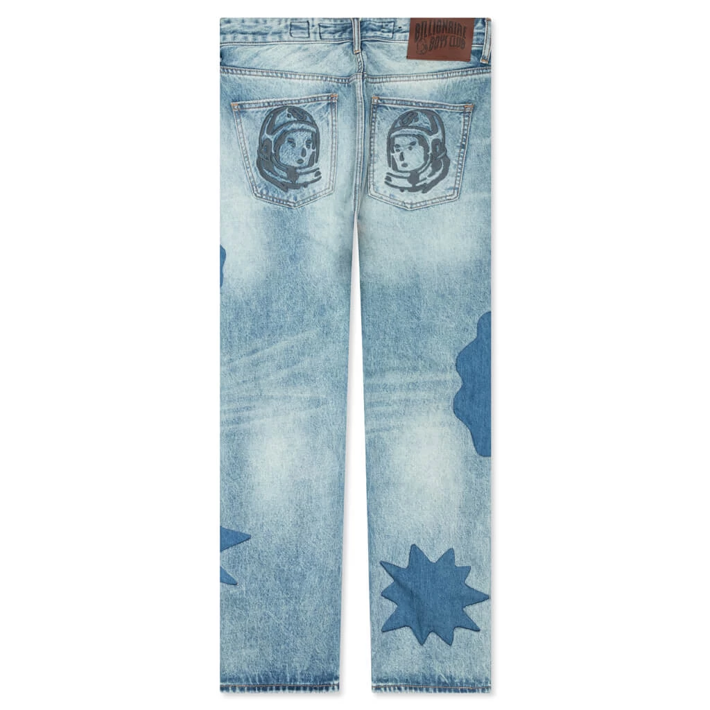 Cut from cotton denim, the Billionaire Boys Club Comet Jean makes an impression on any denim collection. The silhouette spotlights a cut sew detail star pattern with additional contrasting imagery at the rear. The five-pocket design is finished with a zip and button fly and reinforced belt loops.