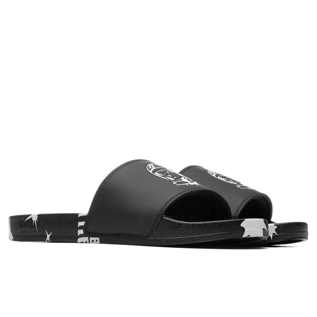 Shining a light on rendered branding, the Space Walk Slides are ideal for warmer seasons. A polyurethane base is designed with synthetic leather for a comfortable fit. The signature astronaut motif is placed across the front for a distinct look.Â