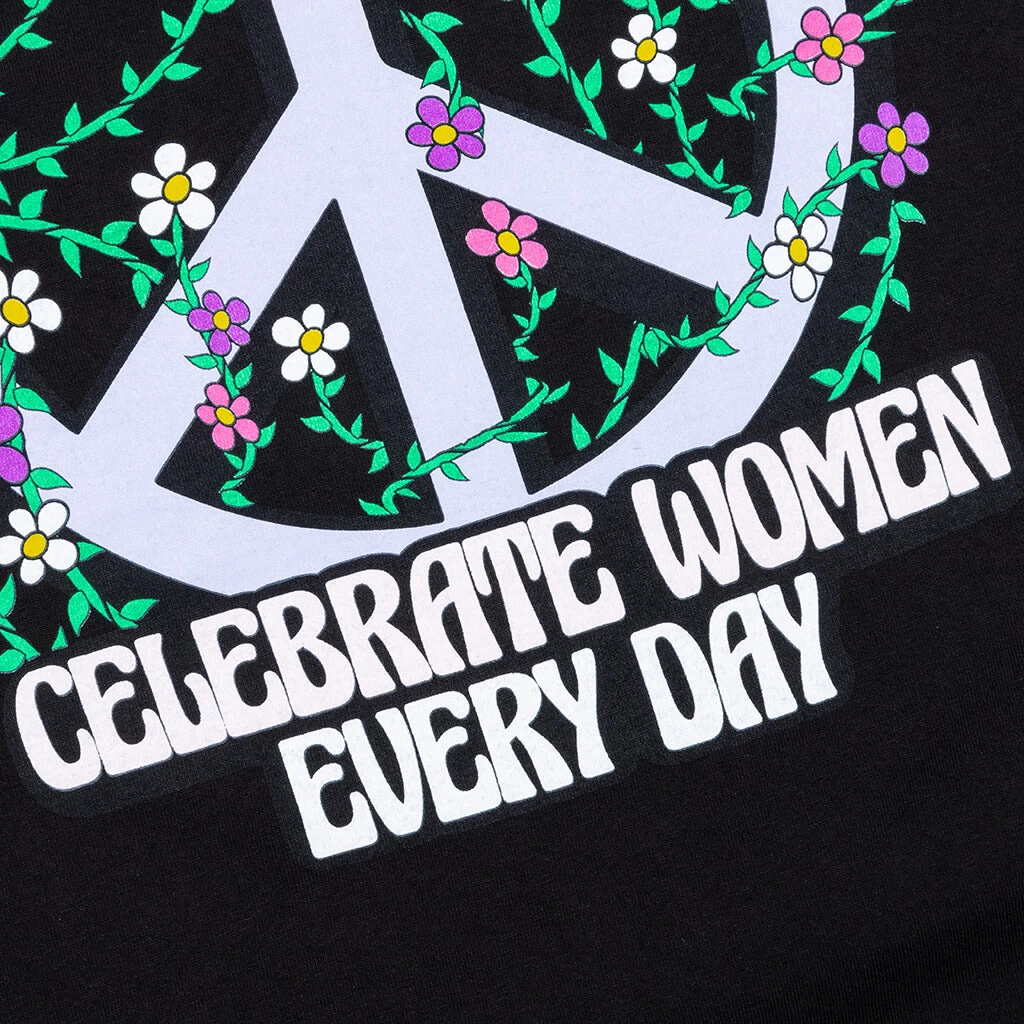 Celebrate International Women’s Day with our FEATURE Celebrate Women Tee. Composed of 6.5 oz medium weight 220 GSM cotton, the silhouette is made for a standard fit. The design features ribbed detailing at the neckline. At the front of the design is screen-printed FEATURE branding at the chest intertwined with floral graphics. At the rear is ‘WOMEN ARE ESSENTIAL’ and ‘CELEBRATE WOMEN EVERY DAY’ typography. Additional peace-inspired graphics at the rear complete the rest of the silhouette.