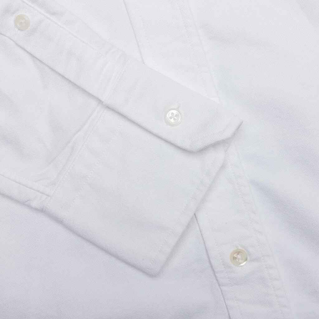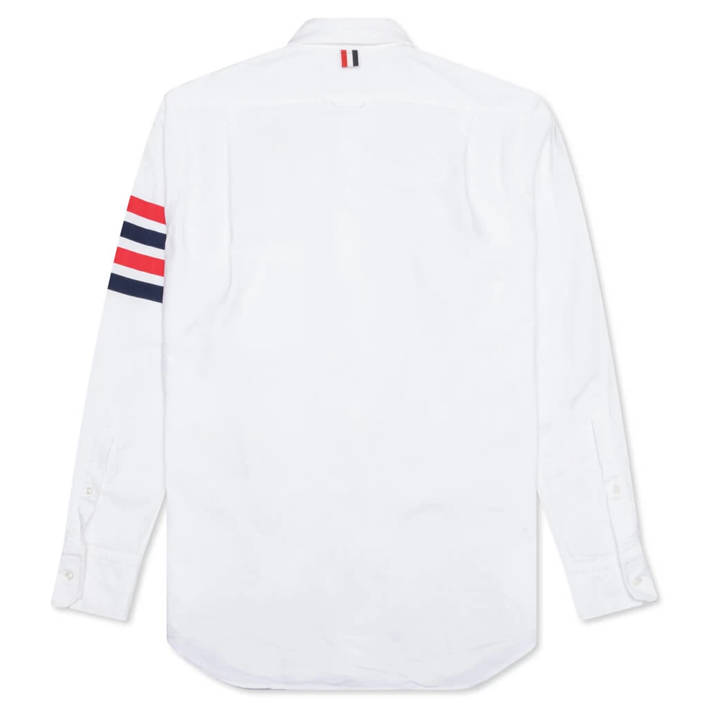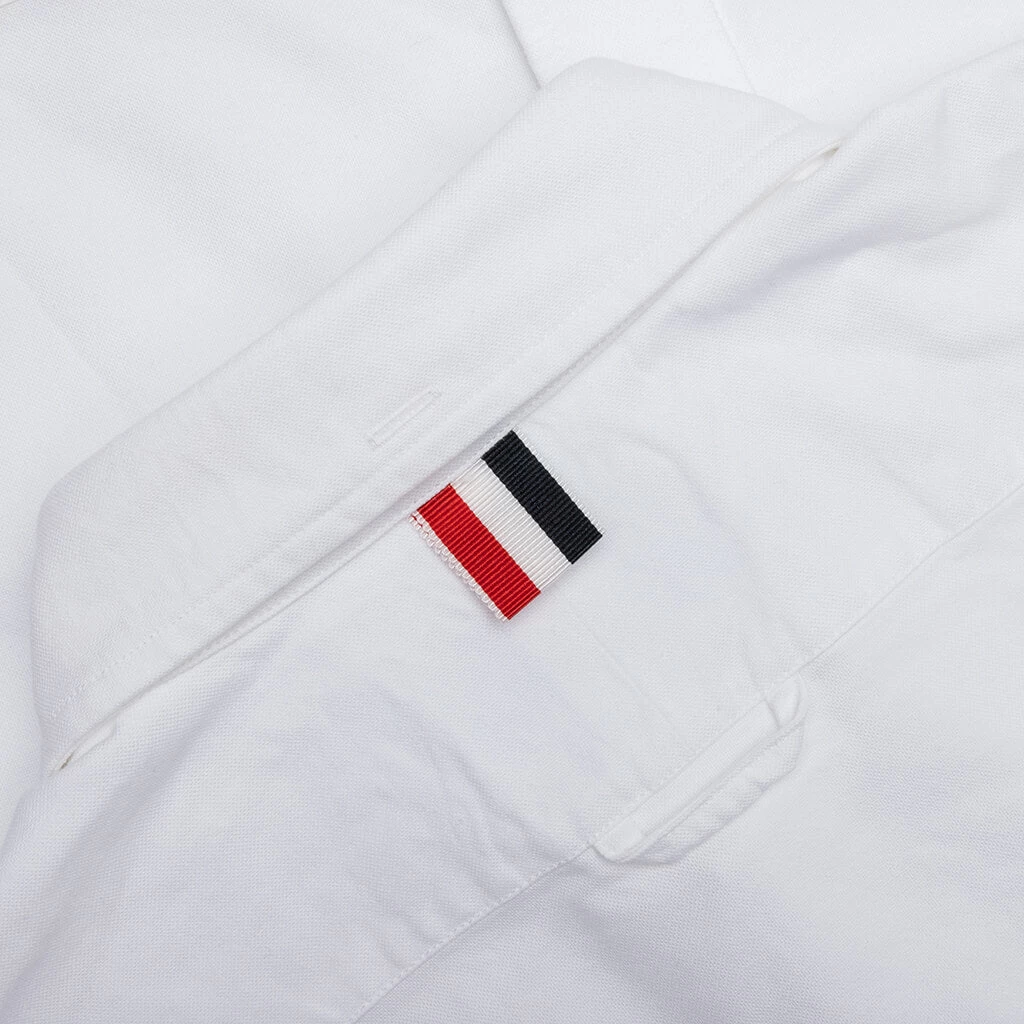 Thom Browne nails sophistication with the Classic Fit Button-Down as it highlights signature appliques and tailored cuts. Cotton fabrication constructs its base providing a soft yet structured design. The long sleeve is detailed with barrel cuffs, a chest pocket, and the fashion label’s distinct stripe motifs.Â