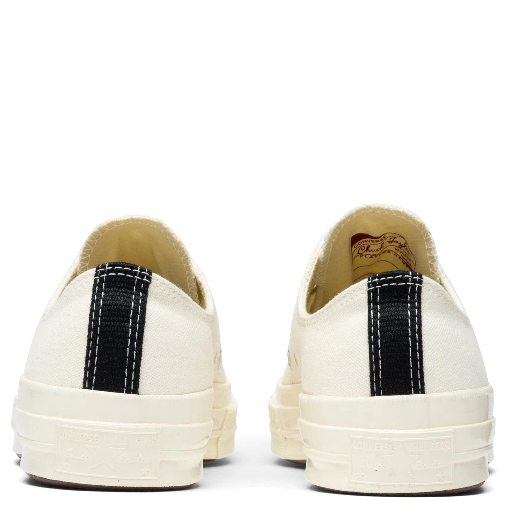 The partnership between Converse and Comme Des Garçons PLAY has made an impact worldwide. Through its traditional sneaker silhouette that is incorporated with the signature Comme Des Garçons bug-eyed red heart motif. The All Star Chuck ‘70 features a traditional full-lace closure and rubber toe that pays homage to its signature design. A rubber outsole completes the design, providing a durable finish.