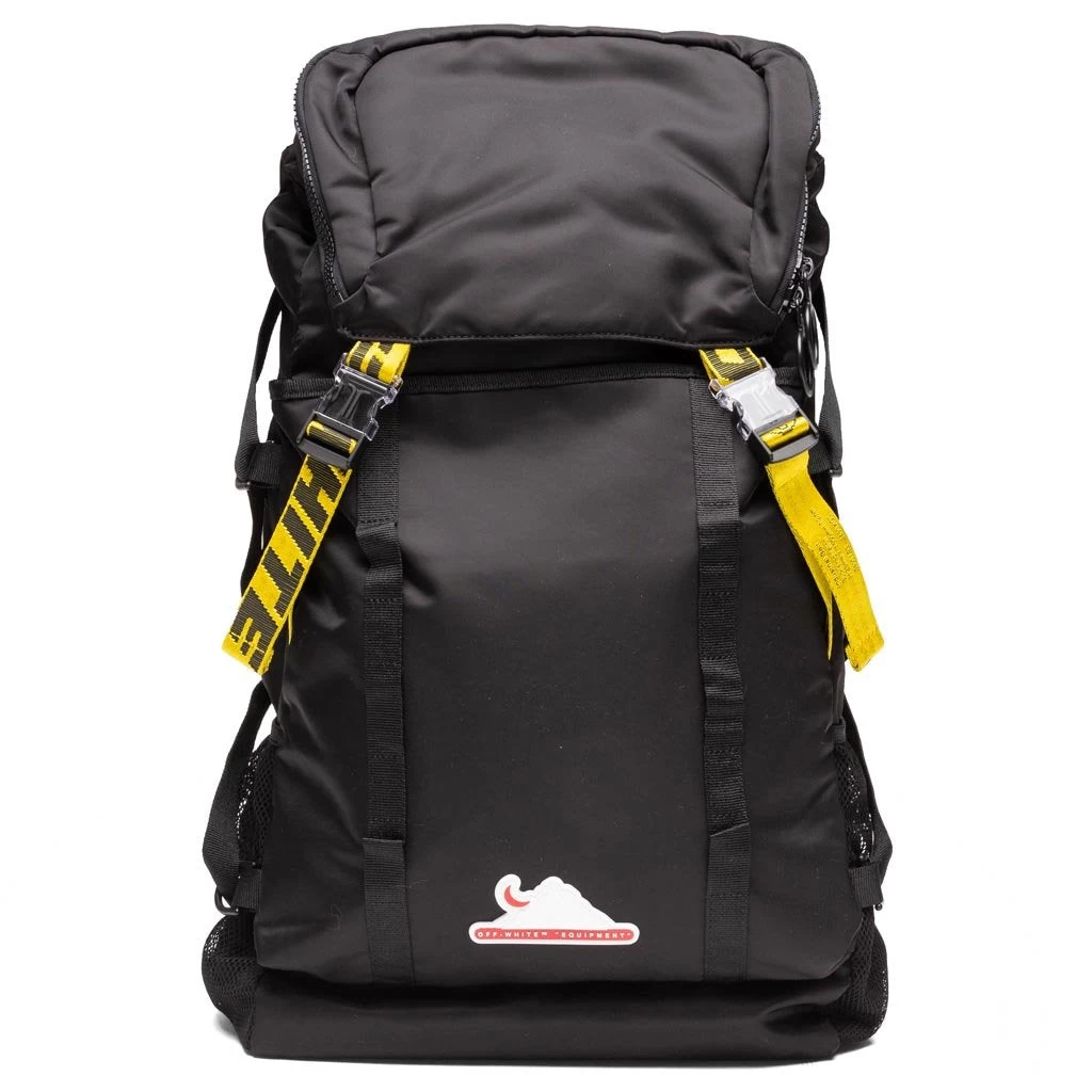 Off-White c/o Virgil Abloh is a fashion label rooted in current culture at a taste-level particular to now. Manufacturing is based in Milan with a core value of the brand to be made from the best available and particular opinion regarding fabric, fit and fabrication. Pictured is the Off-White c/o Virgil Abloh Equipment Backpack in Black/No Color.