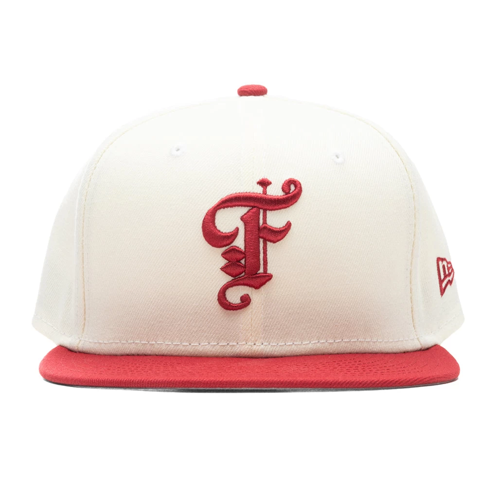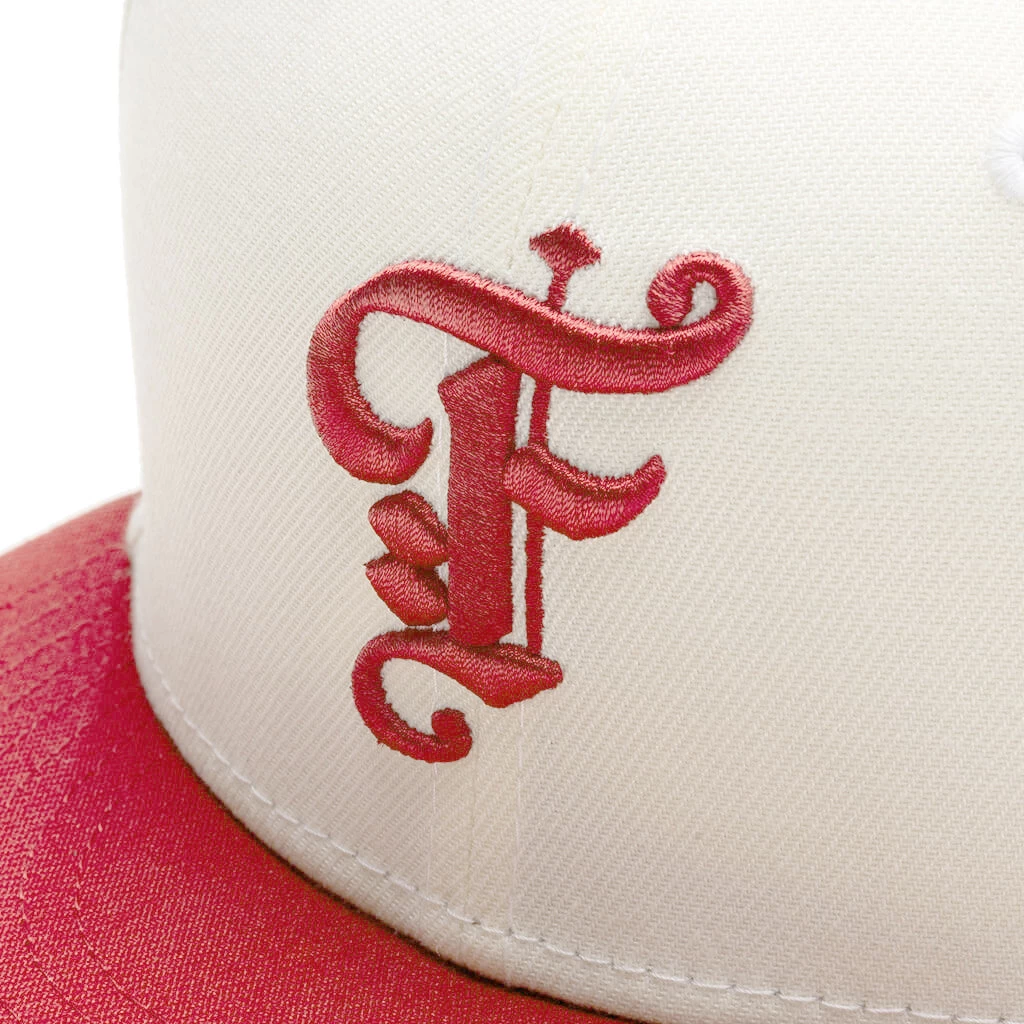 The latest rendition of our iconic OE Fitted Cap includes an off-white base paired with a complementary color for a bold finish. Embroidered on the front panel, our signature Old English branding coincides with the flat-styled brim. Its comfortable design is elevated with perforated details around the crown for enhanced airflow during times of wear. Our cursive name is woven at the rear coinciding with the New Era flag on the side panel.Â