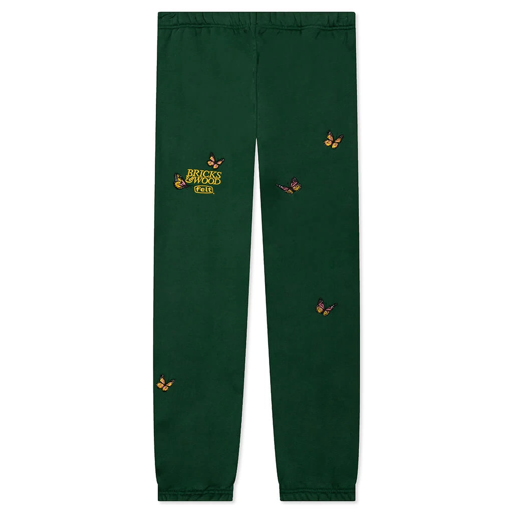 Felt x Bricks & Wood Butterfly Sweatpant is the perfect blend of style and comfort. Made of 100% cotton and featuring an elastic drawstring waistband, side and rear pockets, as well as elastic ribbed cuffs, this sweatpant will keep you feeling cozy while looking fashionable. The embroidered branding and imagery add the perfect finishing touch.