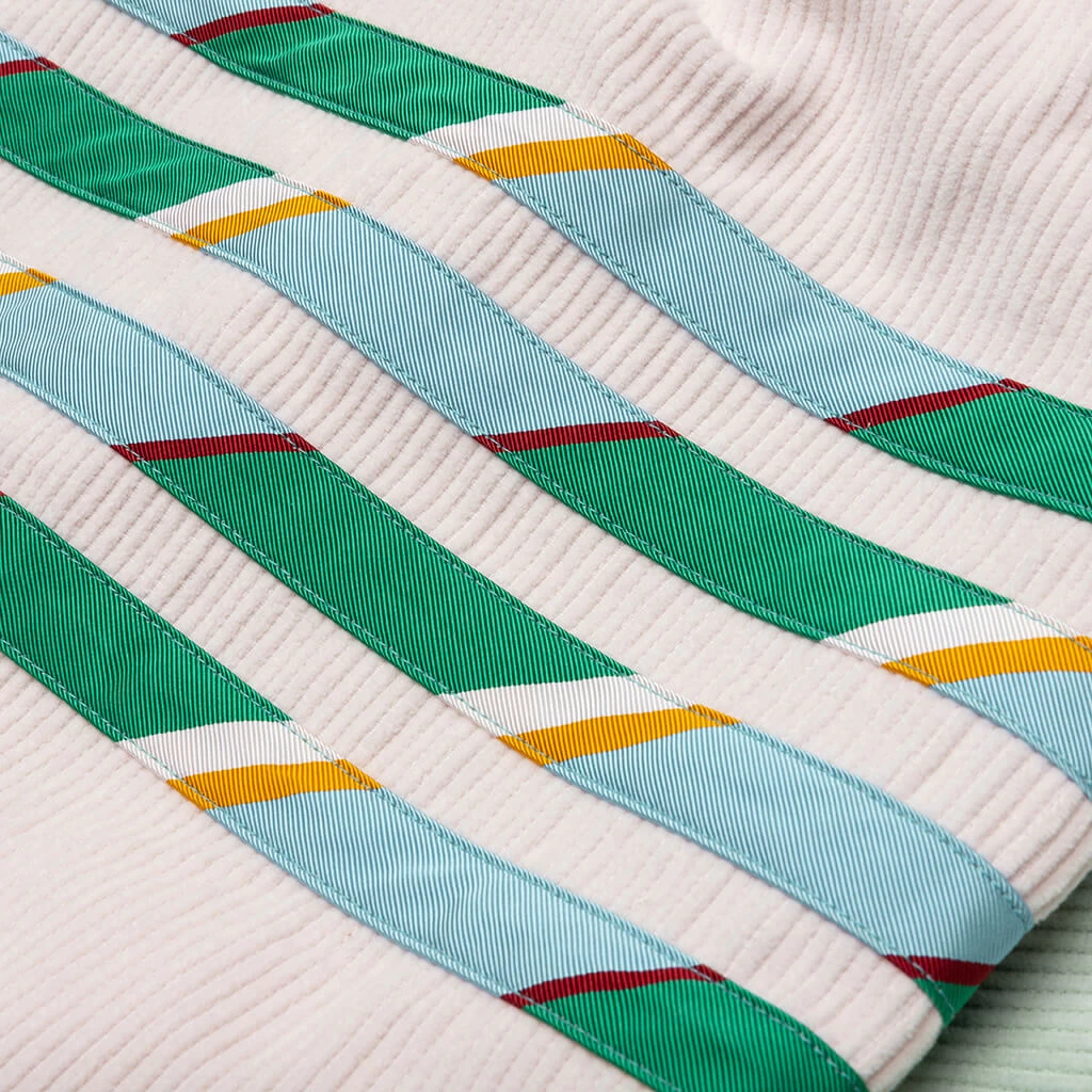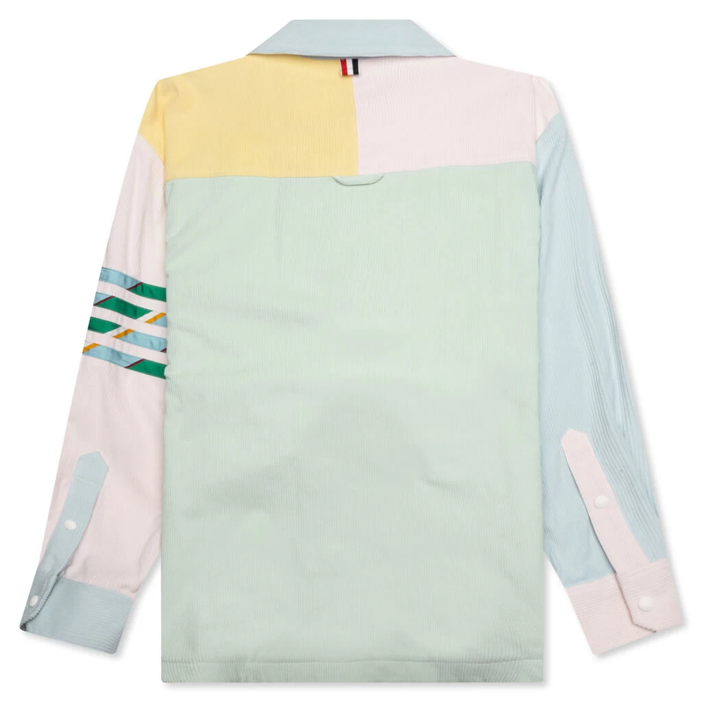 Taking on a playful aesthetic, the Thom Browne Funmix Corduroy 4Bar Shirt Jacket takes on contemporary detailing. The silhouette features a pointed collar along with a button closure and a chest pocket. A woven brand patch is also placed, while the applique branding ties together the remainder of the design.