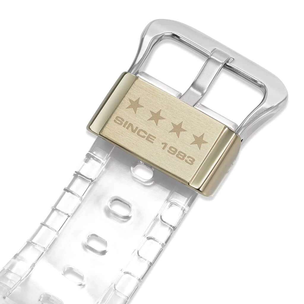 The latest G-Shock silhouette, the 40th Anniversary Clear Remix makes an impression with its stainless steel and resin construction at the case and band. The shock and water-resistant watch incorporates a mineral glass exterior, while the design incorporates features such as a stopwatch, multi-functional alarm, countdown timer, flash alert, LED backlight, and many more features.