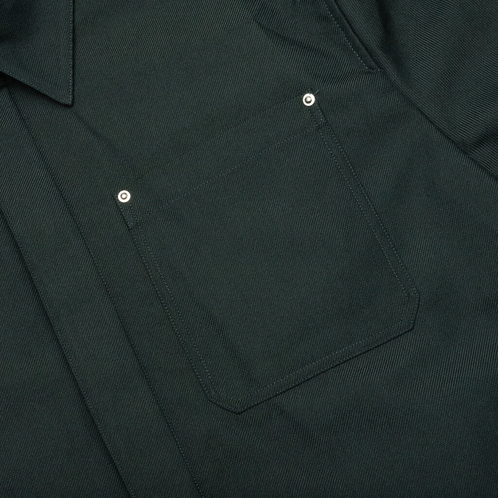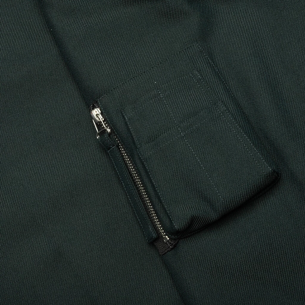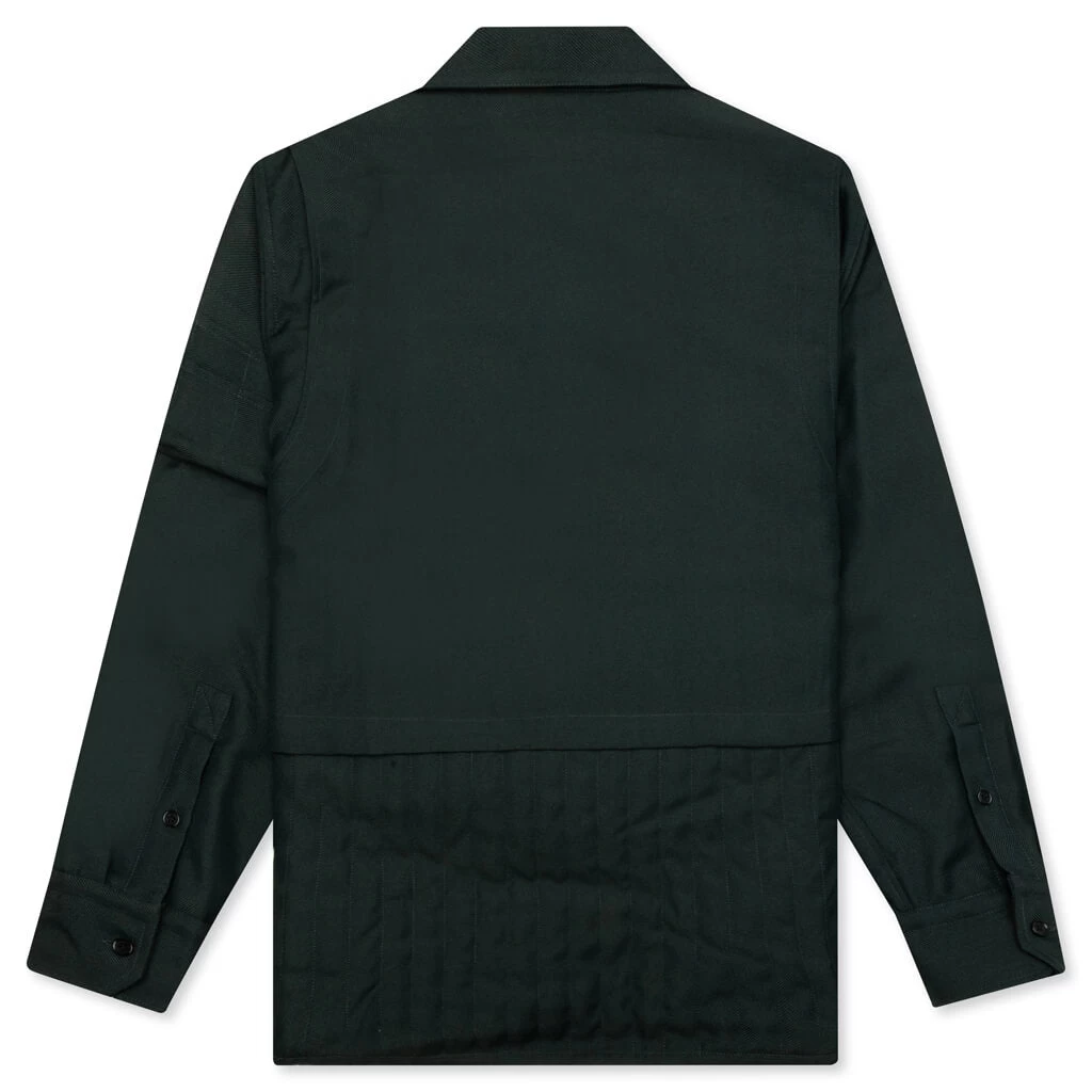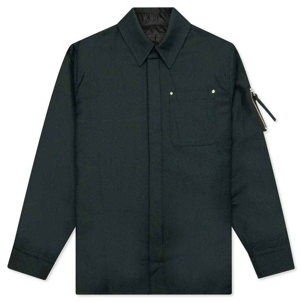 Elevate your wardrobe with Helmut Lang’s Yarndye Jacket in Evergreen. This luxury garment is crafted with a wool and polyester blend and features a pointed collar, a patch pocket at the chest + a zip pocket on the sleeve. Extra details include front button closures as well as button cuffs, and a quilted back panel.Â