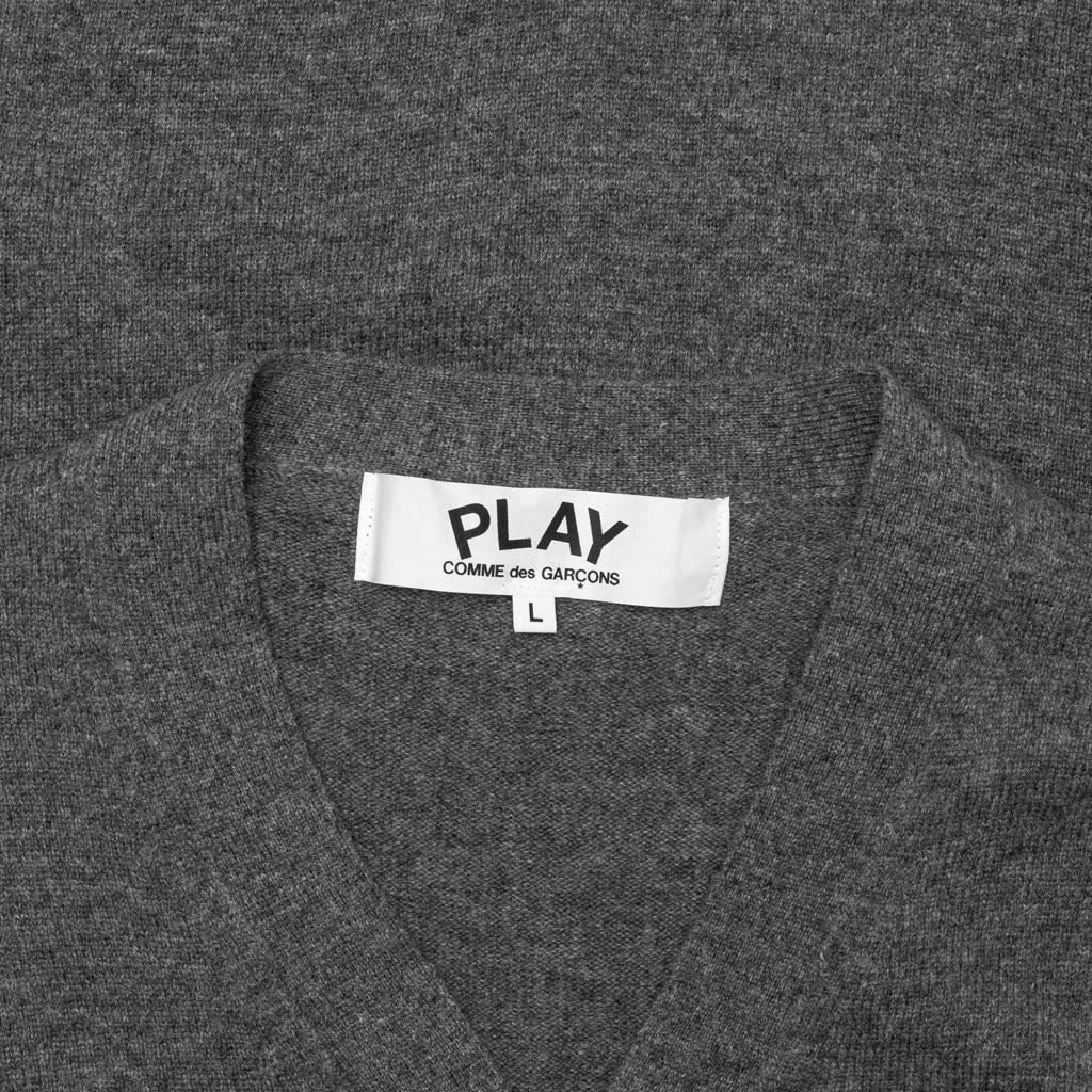 The concept of the Comme des Garcons PLAY line is design by not designing. Characterized by the iconic red heart logo designed by artist Filip Pagowski, the line is a collection of unisex basics, fragrances, and footwear for those who enjoy simplicity. Pictured is the Comme des Garcons PLAY Knit Cardigan Red Heart in Grey.