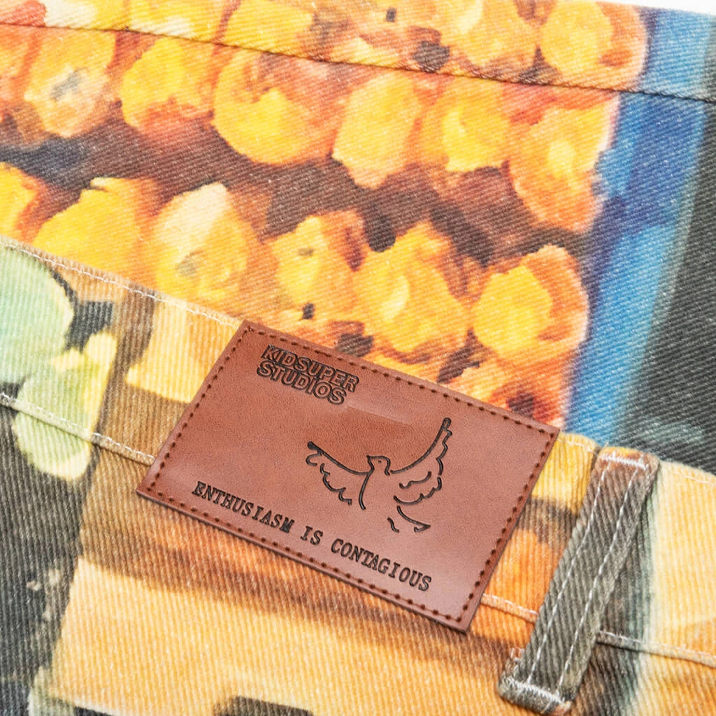 The KidSuper La Casa Cargo Pants are a must-have. Composed of cotton, the silhouette features an all-over artwork print paired with embroidery detail at the pocket. Made for a mid-rise and regular straight leg fit, the pants feature belt loops and a button zip-fly. The leather logo patch completes the remainder of the design.