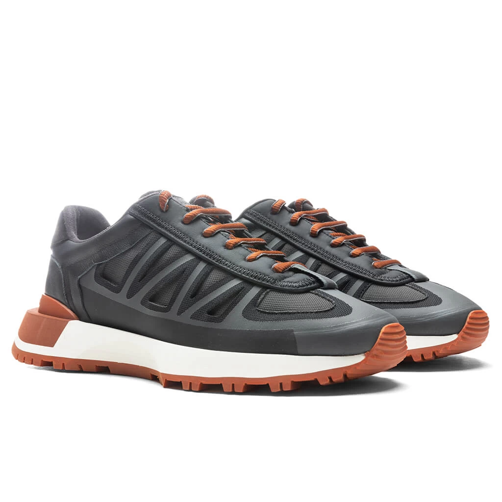 The luxury French fashion house Maison Margiela is well-versed in crafting premium footwear that elevates any collection. The 50//50 Sneaker is composed of a blend of polyamide, bovine leather, and polyurethane within the upper. Techno fabric is detailed throughout the silhouette, with additional branding making a statement. The lace-up closure offers security, while the leather backing at the heel adds dimension. A rubber outsole underneath protects the remainder of the design.