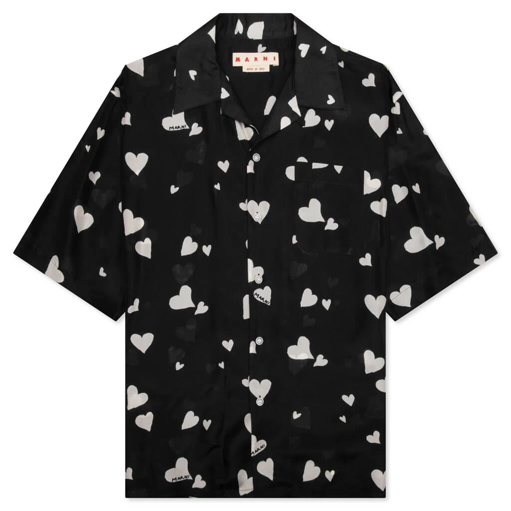 Taking on an elevated aesthetic, the Marni Shirt features a silk construction as well as a spread collar and button-down closure. Made for a boxy fit, the all-over printed heart graphics and chest pocket finish up the remainder of the design.