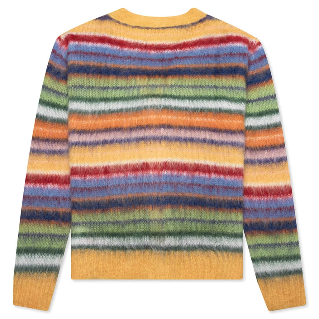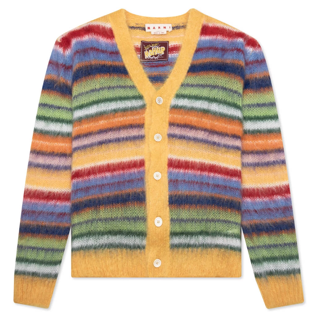 The Striped Mohair Cardigan makes an impression on any apparel collection. The design utilizes a mohair and polyamide blend. The silhouette also features a button closure and rib-knit trims for a finishing touch.