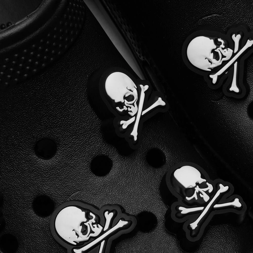 Mastermind JAPAN collides with Crocs by introducing a new take on the ‘Classic Clog’ silhouette. Featuring a rubber construction, the glossy top is decorated with oversized Jibbitz in the skull motif, referencing Mastermind JAPAN’s grunge aesthetics. Additional Mastermind JAPAN branding is printed at the moveable heel strap. Additional branding resides at the rubberized heel and the Cross Light sole unit, providing extra cushioning to each step.