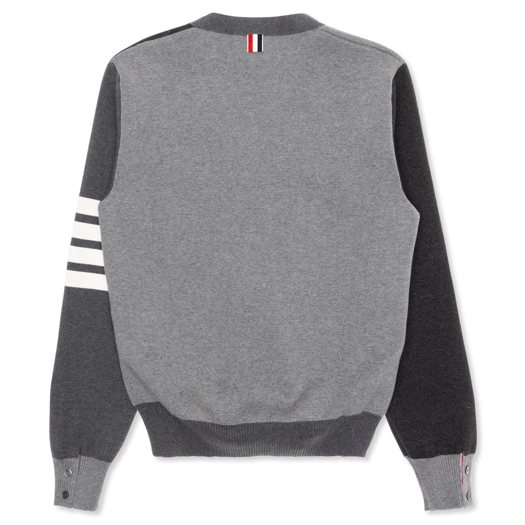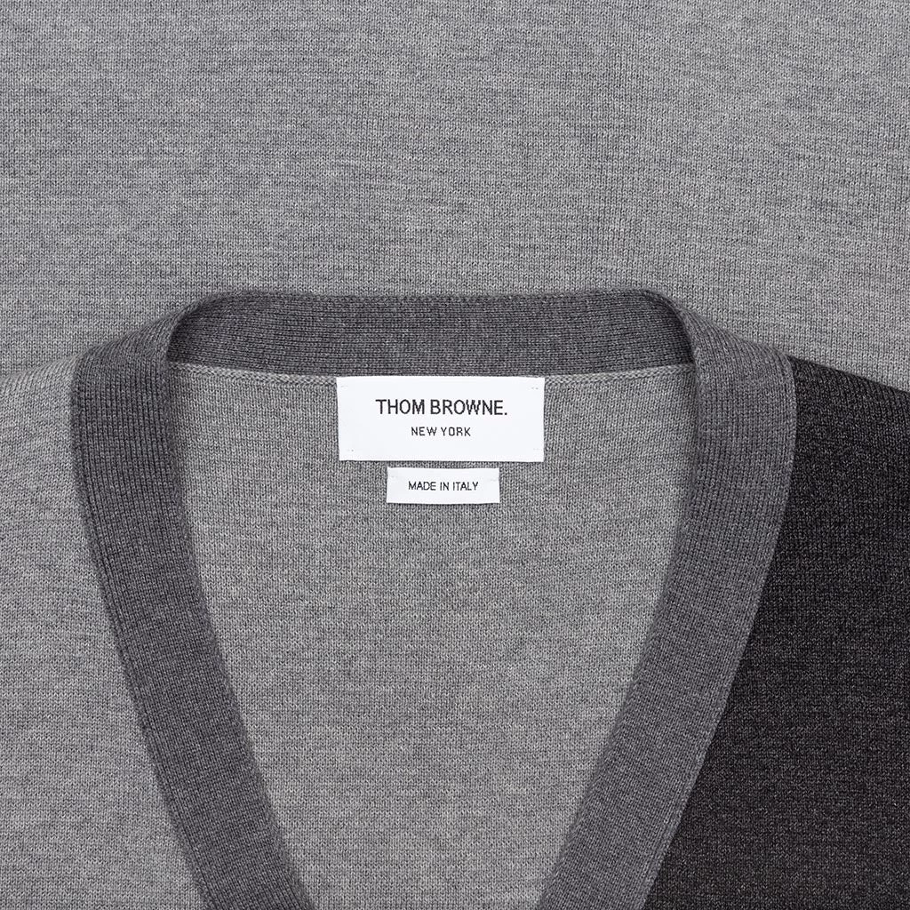 In 1997 Thom Browne worked as a salesman in Giorgio Armani’s showroom which lead to a position in the creative department for Club Monaco. Brown spent several years leading the creative development team at Club Monaco before launching his own label. What started in as a small made-to-measure-suit shop in New York City, Thom Brown clothing has grown into a global brand that now includes ready-to-wear, shirts, shoes and accessories. Pictured is the Thom Browne Milano Stitch V-Neck Cardigan in Grey.