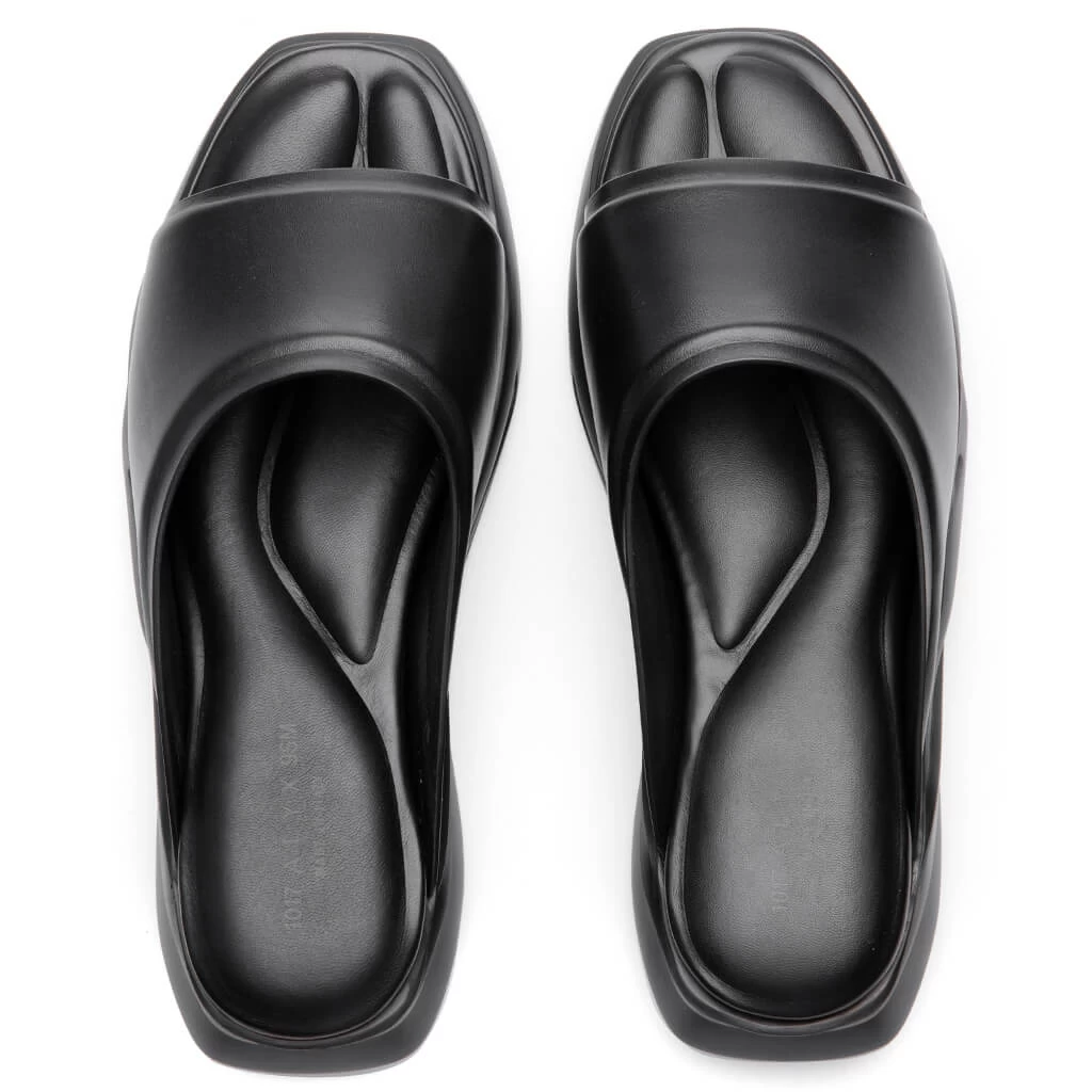 Add a new footwear silhouette to your rotation with the 1017 Alyx 9SM Mono Slide. Leather is seen at the upper, while the round open toe makes an impression. An embossed logo at the rear and the rubber outsole underneath finish the look.
