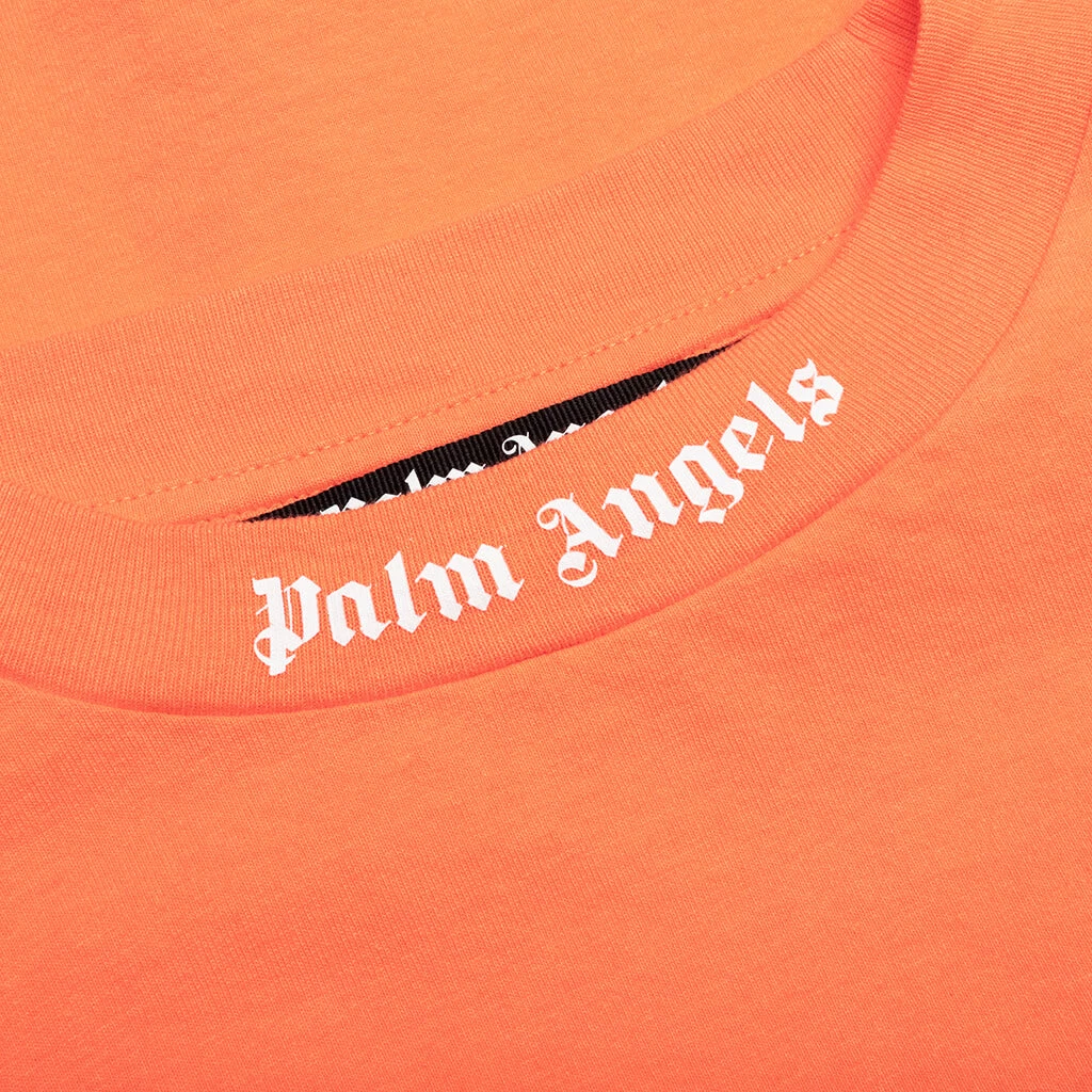 The Palm Angels Classic Logo Over Tee makes a statement in any collection. Cut from cotton, the silhouette features a ribbed neckline for added dimension. Screen-printed Palm Angels logo graphics at the neckline and back tie together the design.