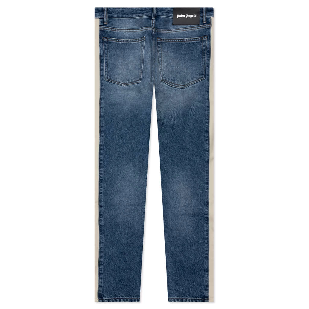 Upgrade your denim rotation with the Palm Angels Indigo Track Denim Pants. Crafted from a blend of cotton, polyester, and calf leather, the pants spotlight a mid-rise and slim fit along with side stripe detailing. A front button and zip fastening secure the fit while the belt loops and classic five pockets add a functional touch.