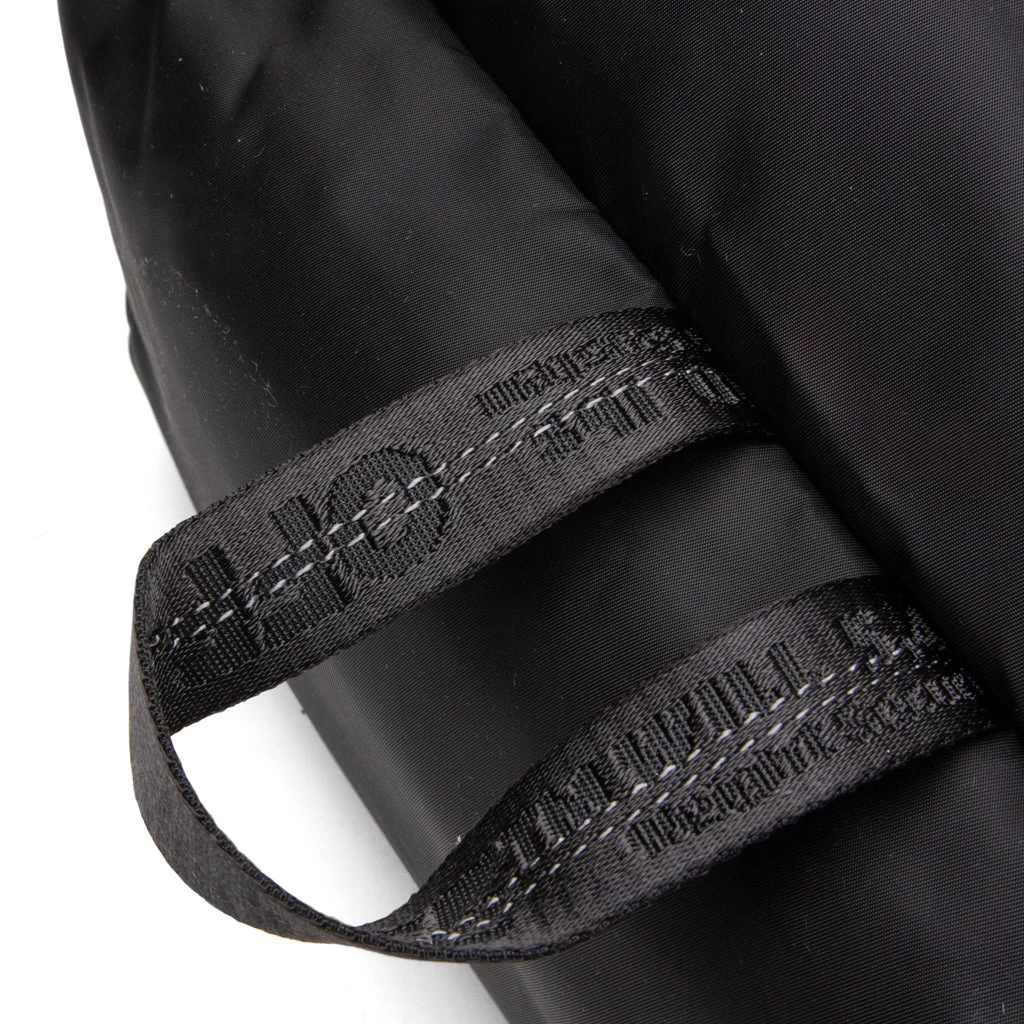 Off White c/o Virgil Abloh creates eclectic designs that tether the worlds of streetwear and high-fashion. Since graduating from the Pyrex Vision brand, Off-White continues to captivate the attention of many with designs that, “define the grey area between and black and white”. The brand focuses on high-end fabrics in familiar streetwear silhouettes while using plain labels and industrial packaging. Pictured is the Off-White c/o Virgil Abloh Pascal Arrow Easy Backpack in Black/Pink.
