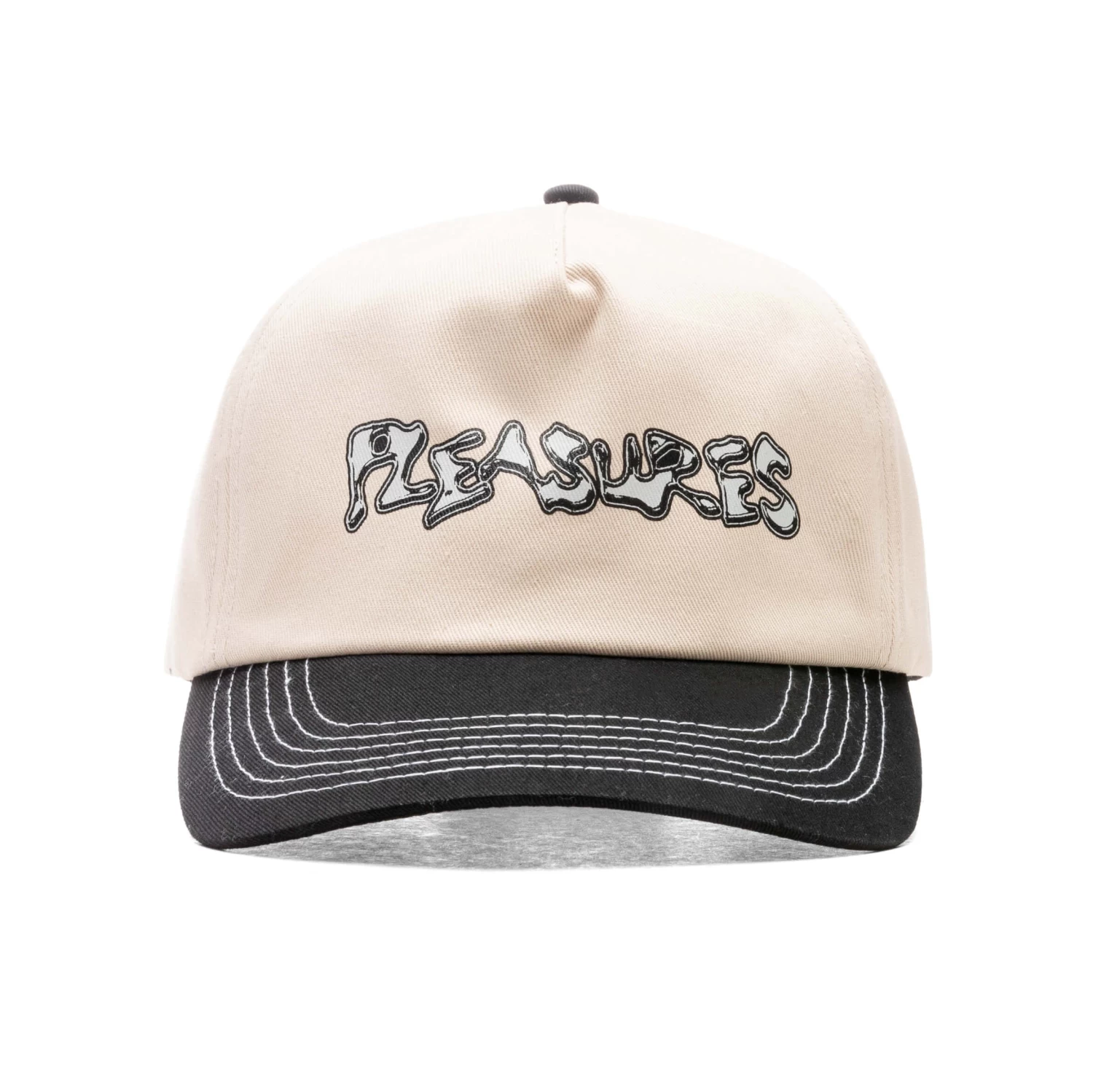The PLEASURES Melt Unconstructed Cap is a must-have headwear item for any collection. Cut from canvas, the silhouette includes a 5-panel design and contrast stitching at the curved brim. The screen-printed melting-inspired branding at the face of the cap paired with the snapback closure secures the rest of the silhouette.