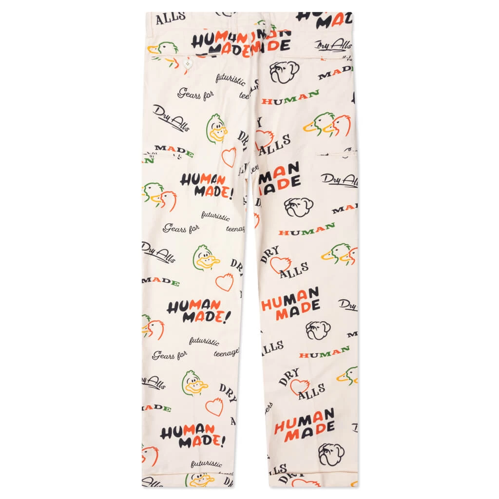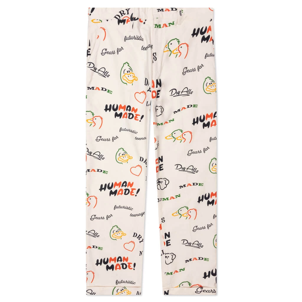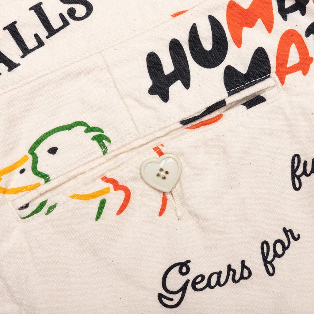 The Human Made Printed Chino Pants make an impression with their cotton construction and belt loops. Side pockets and rear pockets are placed, while the zip fly secures the design. The screen-printed all-over branded motifs finish the remainder of the design.