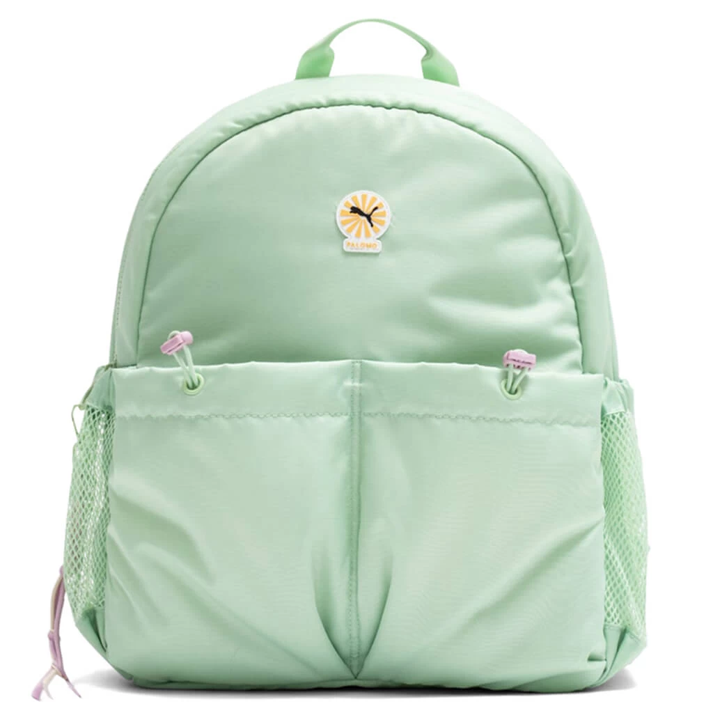 The second Puma x Palomo collaboration introduces the Backpack. Featuring a two-way zipper at the main compartment, the backpack incorporates elastic mesh slip-on side pockets. Slip-on pockets paired with front bungee closures make a statement. An interior laptop compartment and interior zip pocket offer a functional touch. A detachable zip accessory is placed, while the Puma x Palomo silicon badge at the front and adjustable padded shoulder straps treated with daisy chain loops and D-ring hardware complete the look.