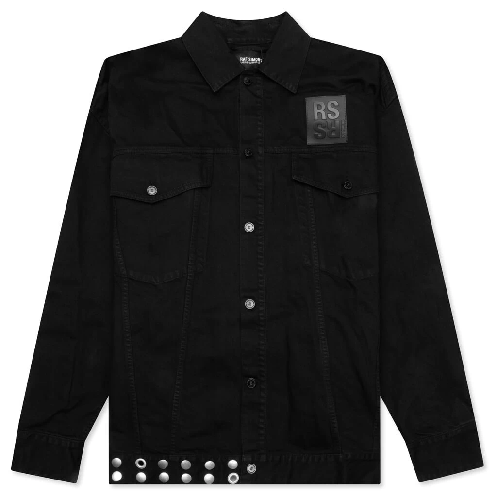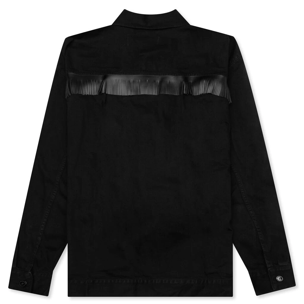 Raf Simons introduces the Big Fit Jacket w/ Leather Fringes and Studs. Composed of cotton, the jacket incorporates leather fringes at the back yoke in addition to a leather logo patch and buttoned cuffs. The flap patch pockets and front button closure offer additional functionality. The pointed collar and metal stud details wrap up the design.