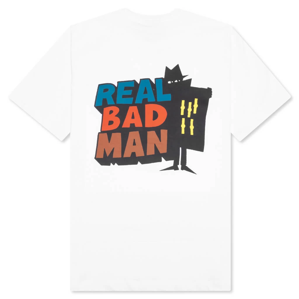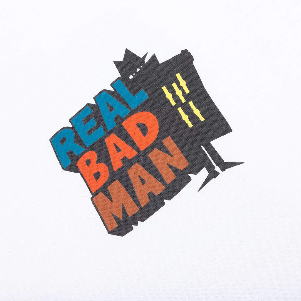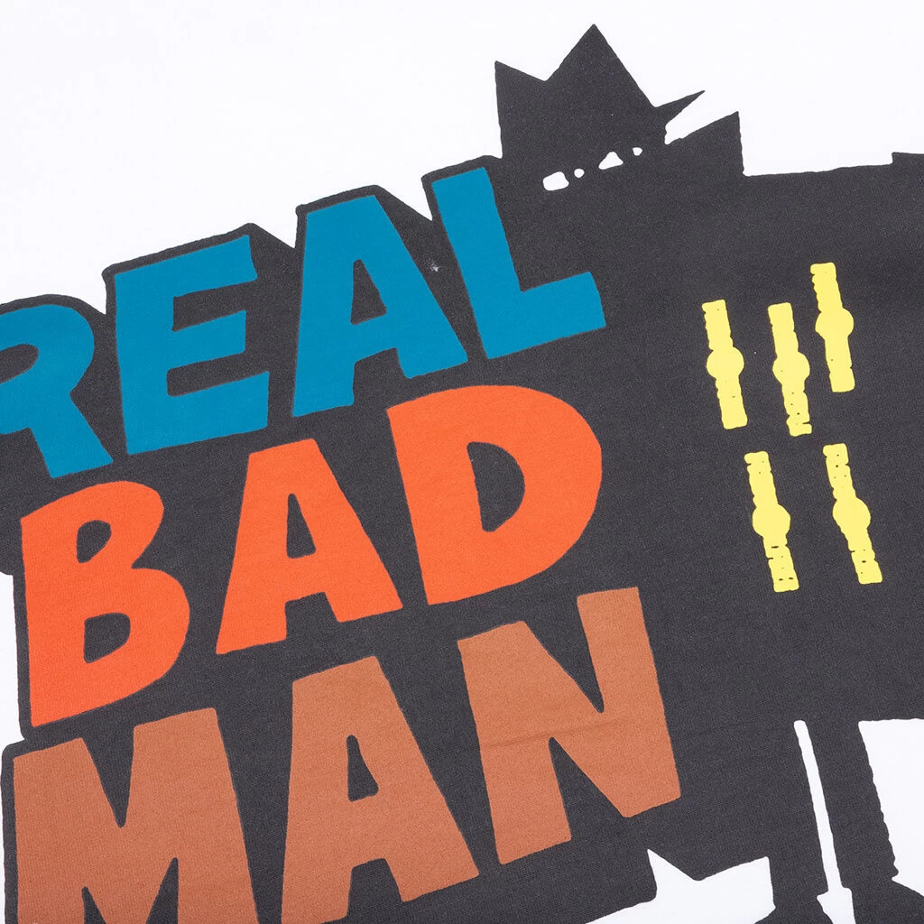 Composed of cotton, the Real Bad Man Logo S/S Tee Vol. 12 makes an impression with any apparel collection. The cotton-cut tee features a crew neckline in addition to screen-printed logo branding graphics at the chest and back.