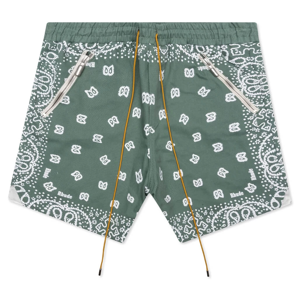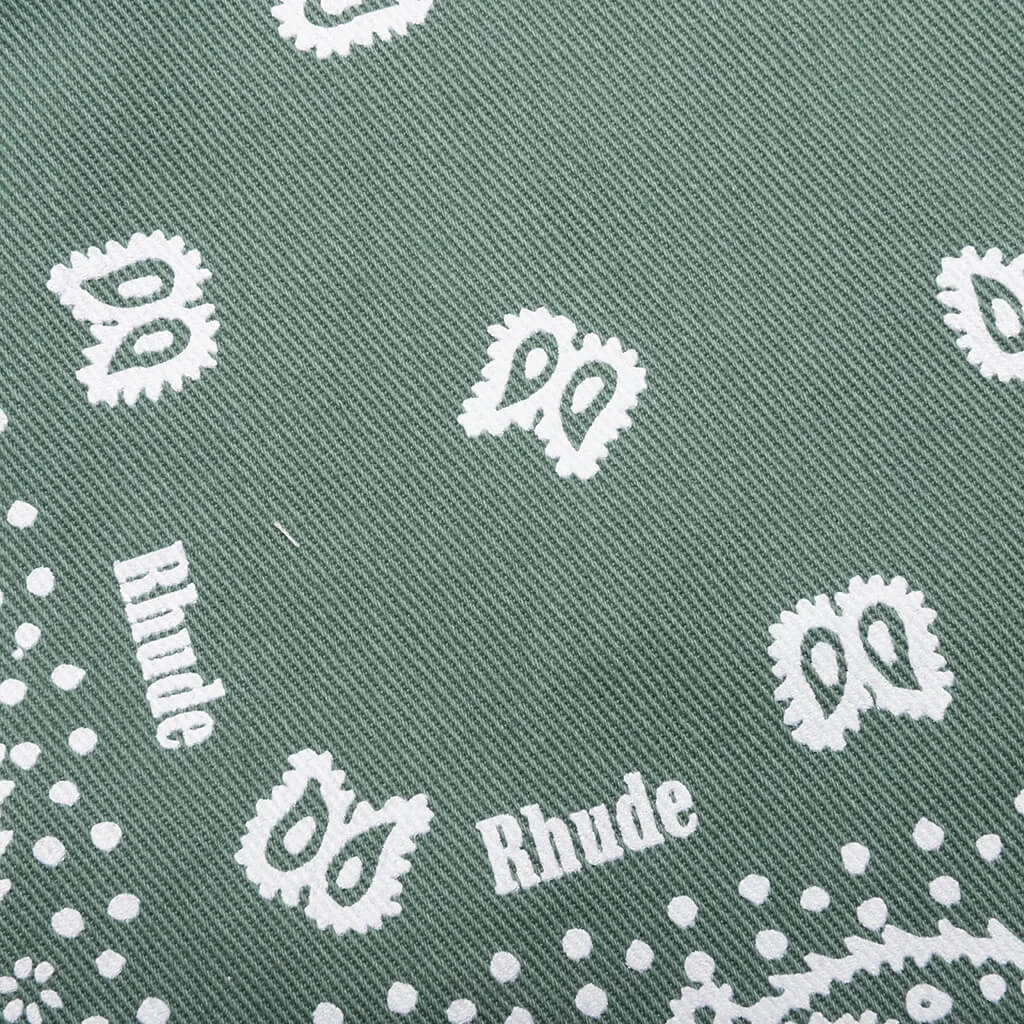 The Rhude Bandana Shorts are a premium silhouette for any collection. The design spotlights a cotton construction along with an elastic drawstring waistband. Zipper pockets can be found at the front, while the flap pockets at the rear paired with the all-over bandana print and Rhude logo complete the rest of the design.