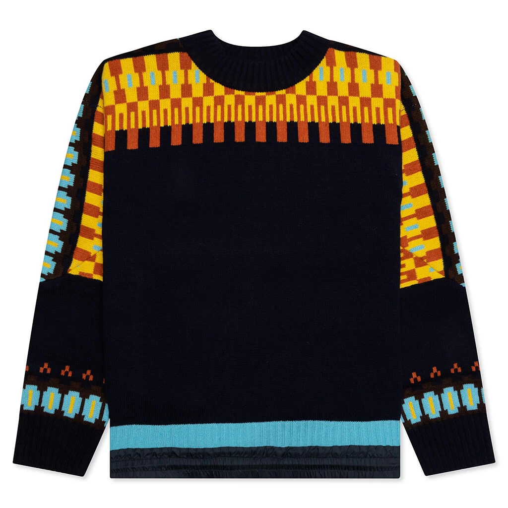 Comfort is achieved with the Wool Knit Pullover from Sacai. A blend of wool and nylon constructs the base which highlights abstract knitting and bold colorings. Ribbed cuffs offer a sophisticated style while adjustable drawstrings revert to the brand’s tactical aesthetic.