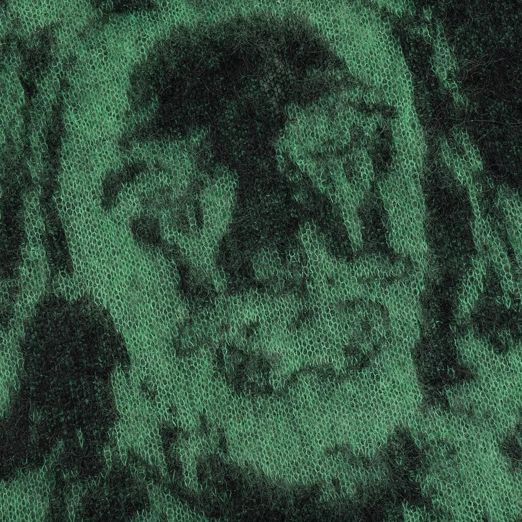 The Saint Michael x Born x Raised Clown Knit is a must-have silhouette. Composed of a wool blend, the sweater incorporates rib-knit detailing at the trims. Stitched graphics are seen at the front, completing the look.