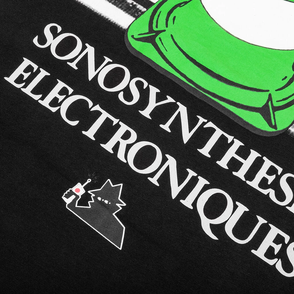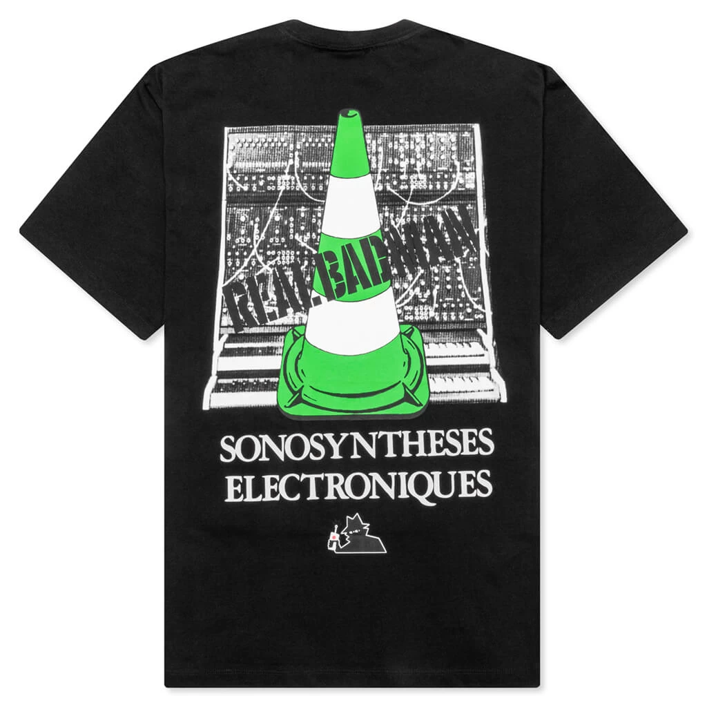 Real Bad Man introduces the Sonosyntheses S/S Tee. The graphic tee features a crew neckline along with screen-printed logo branding and graphics at the front and rear of the design.