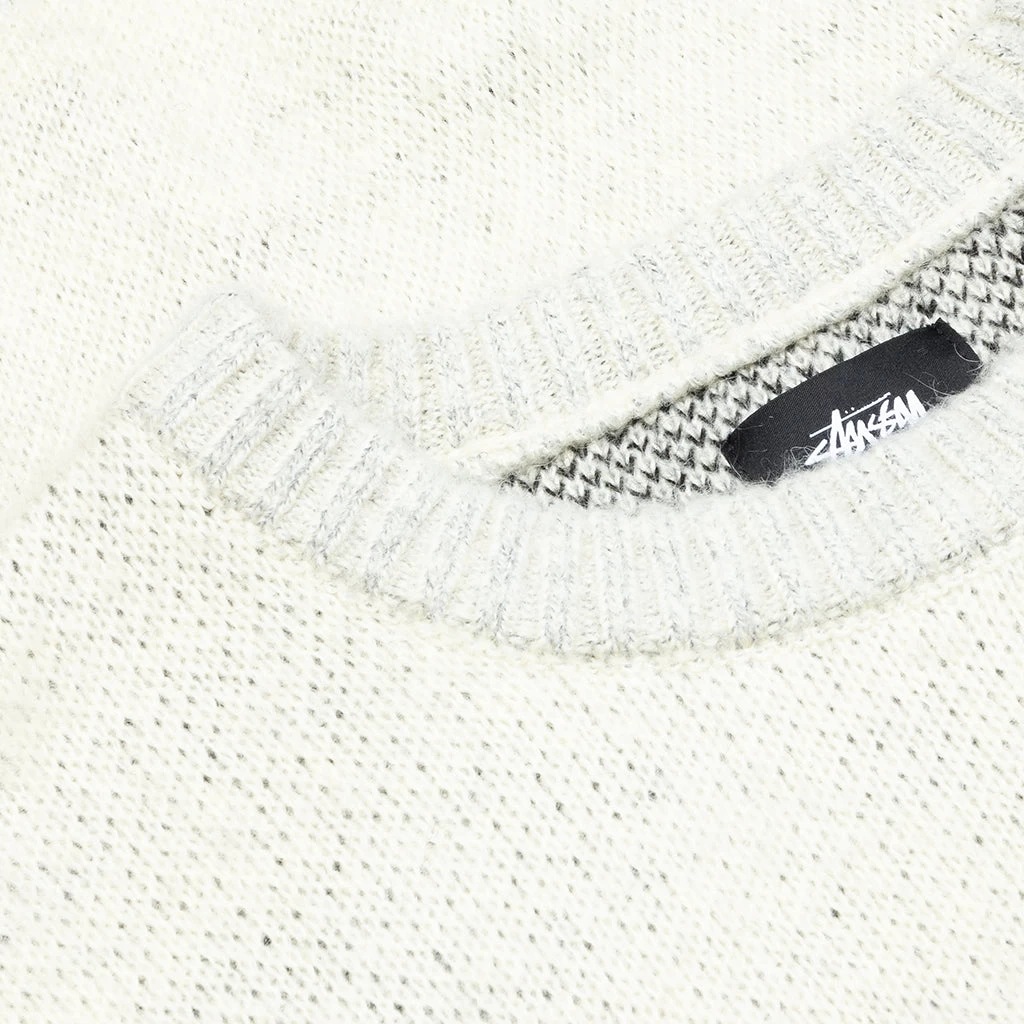 Originating in the 1980s, Shawn Stussy’s emerged in Laguna Beach as a product of surf culture. ‘Scrawled’ logos of the Stussy surname marked handmade surfboards and is now known as one of the oldest original streetwear brands. Pictured is the Stussy 8 Ball Heavy Brushed Mohair Sweater in Cream.