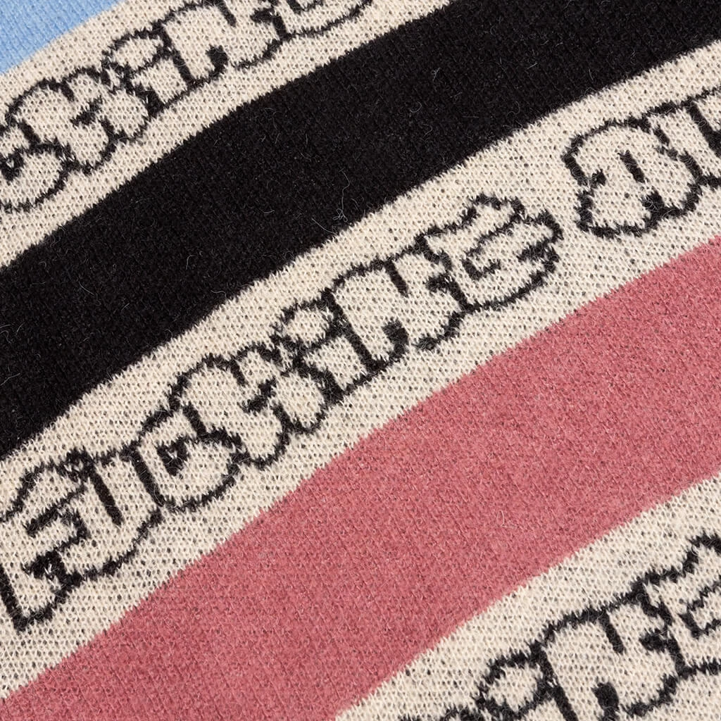 Iconic streetwear brand Fucking Awesome introduces the Wanto Brushed Sweater. The Mohair-blend crewneck sweater features a horizontal stripe pattern that intertwines the ‘Wanto Graffiti’ logo. The collar is double layered for a detailed look, while a ribbed hem and sleeves complete the design.