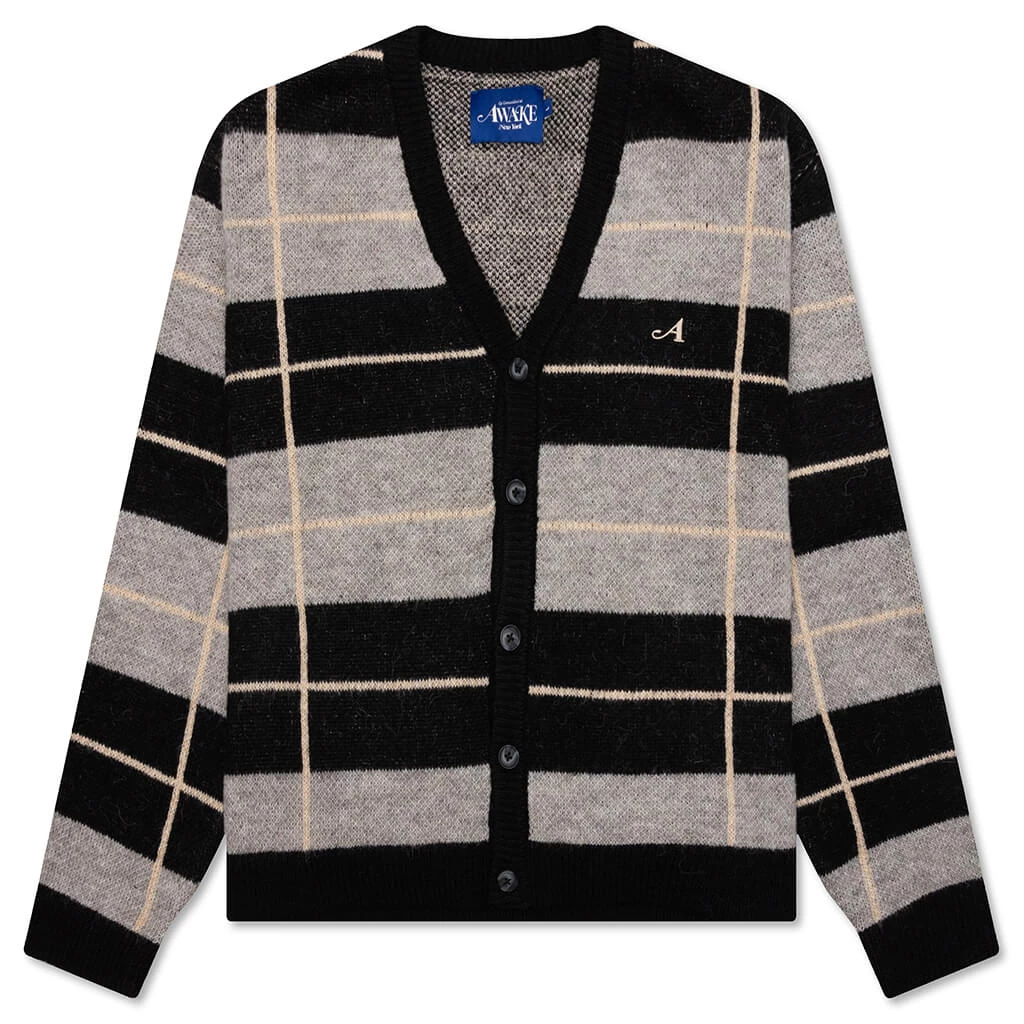 Awake NY offers a premium touch to the Windowpane Mohair Cardigan this season. Developed with quality wool mohair fabric, the cardigan is designed with contrasting trim. A full-length button closure is implemented for a secure fit while its mid-weight base is designed with a checkered pattern.